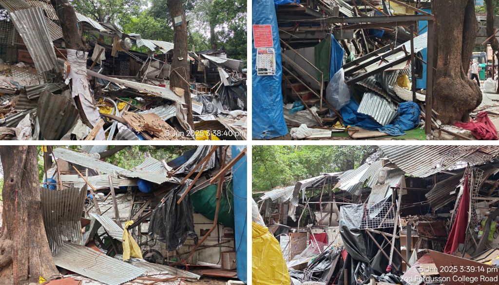 पुणे, ५ जून २०२५ : शहरातील फर्ग्युसन कॉलेज रस्त्यावर (एफसी रोड) वाढलेल्या अतिक्रमणांवर नियंत्रण मिळवण्यासाठी पुणे महापालिकेच्या अतिक्रमण विभागाने गुरुवारी जोरदार कारवाई केली. प्लॉट क्रमांक ६१४ बी येथील अनधिकृत दुकानांवर कारवाई करत पालिका अधिकाऱ्यांनी थेट बुलडोझर चालवून अतिक्रमण हटवले. या मोहिमेत एकूण १२,५०० चौरस फूट क्षेत्रफळावरील अनधिकृत बांधकामे जमीनदोस्त करण्यात आली.