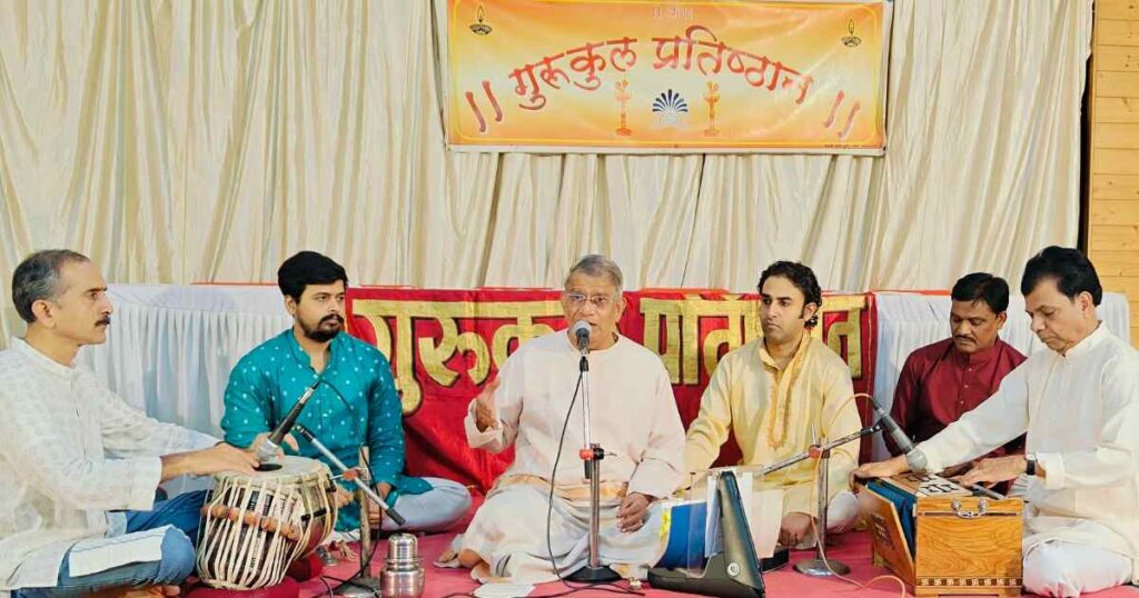 कार्यक्रमाच्या सुरुवातीला भारतरत्न पं भीमसेन जोशी यांचे ज्येष्ठ शिष्य पं उपेंद्र भट यांचा भजनांचा कार्यक्रम संपन्न झाला. यावेळी ‘जय जय राम कृष्ण हरी…’ या जयघोषाने यांनी कार्यक्रमाला सुरुवात केली. भारतरत्न पं भीमसेन जोशी यांनी अजरामर केलेले ‘रूप पाहता लोचनी…’, ‘इंद्रायणी काठी…’, ‘रूप तुझे देवा दाखवी केशवा…’, ‘राजस सुकुमार मदनाचा पुतळा’ हे अभंग त्यांनी गायले.. यानंतर संत नामदेव महाराजांचा ‘तीर्थ विठ्ठल, क्षेत्र विठ्ठल…’ हा अभंग, संत एकनाथ महाराजांचा ‘माझे माहेर पंढरी…’ हा अभंग त्यांनी प्रस्तुत केला. संत पुरंदर दास यांनी लिहिलेले ‘भाग्यदा लक्ष्मी बारम्मा…’ हे कन्नड भजन पं उपेंद्र भट यांनी सादर केले. ‘कृष्ण कृष्ण कहिये…’ या कृष्ण भजनाने त्यांनी समारोप केला. आनंद अभ्यंकर (तबला), प्रभाकर पांडव (संवादिनी), देवव्रत भातखंडे (गायन), अनमोल थत्ते, नागेंद्र पांचाळ (गायन व टाळ) यांनी साथसंगत केली. शुभदा वर्तक यांनी संपूर्ण कार्यक्रमाचे सूत्रसंचालन केले. जाई कामत यांनी पाहुण्यांचे स्वागत केले. डॉ. अशोक कामत यांनी प्रास्ताविक केले व आभार मानले.