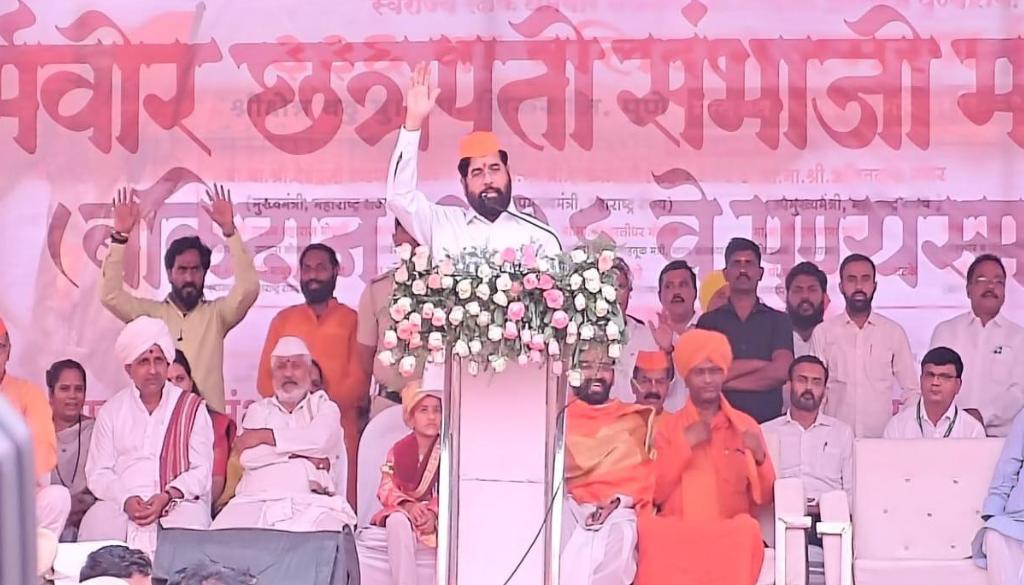 ते म्हणाले, राज्य शासन हे लोककल्याणकारी आहे. छत्रपती शिवाजी व छत्रपती संभाजी महाराज यांच्या आदर्शावर चालणारे हे सरकार असून जनकल्याणाचा संकल्प शासनाने केला आहे. गेल्या अडीच वर्षात राज्यात अनेक विकास प्रकल्प आणि लोकाभिमुख कल्याणकारी योजना राबविल्या. तीर्थक्षेत्र, गडकोट किल्ले यांच्या विकासाला प्राधान्य दिले. गडकोट किल्ले हे आपले धरोहर आहेत. गडकोट किल्ल्यांवरील अतिक्रमण प्राधान्याने काढण्यात येईल. गड-किल्ल्यांचे पावित्र्य जपणे ही सर्वांची जबाबदारी आहे. ते म्हणाले, मुंबईतील सागरी मार्गाला धर्मरक्षक संभाजी महाराजांचे नाव देण्यात आले आहे. छत्रपती संभाजी महाराजांची जयंती गेट वे ऑफ इथे साजरी करण्यात आली, ही अभिमानाची बाब आहे.