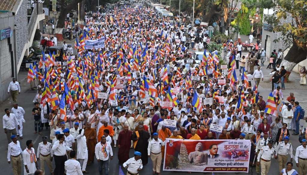 पुणे, 08/03/2025: बुद्धम् शरणम् गच्छामि ॥ धम्मम् शरणम् गच्छामि॥ संघम् शरणम् गच्छामि .. च्या स्वरात शांततेचा संदेश देत महाबोधी महाविहार मुक्ती आंदोलनाच्या पाठिंब्यासाठी पुण्यात बौद्ध अनुयायांचा विराट मोर्चा काढण्यात आला. महाबोधी महाविहार मुक्ती आंदोलन समिती, पुणेच्या वतीने आयोजित या महामोर्चात लाखोंच्या संख्येने बौद्ध अनुयायी सहभागी झाले होते.