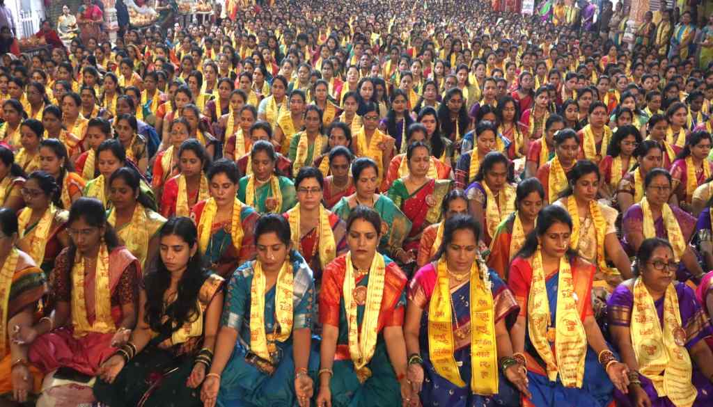 पुणे, ०८/०९/२०२४: ओम नमस्ते गणपतये… ओम गं गणपतये नमः:… मोरया, मोरया… च्या जयघोषाने तब्बल ३५ हजार महिलांनी एकत्र येत अथर्वशीर्ष पठणातून गणरायाला नमन केले. ॠषीपंचमीनिमित्त आयोजित सोहळ्यात उर्जेने भारलेल्या वातावरणामध्ये हजारो महिलांच्या गर्दीचा उच्चांक यानिमित्ताने पहायला मिळाला. पारंपरिक वेशात मध्यरात्री १ वाजल्यापासून महिलांनी या उपक्रमाकरीता हजेरी लावण्यास सुरुवात केली. गणेश नामाचा जयघोष करीत अथर्वशीर्षासोबत महाआरती करीत महिलांनी स्त्री शक्तीचा जागर केला.