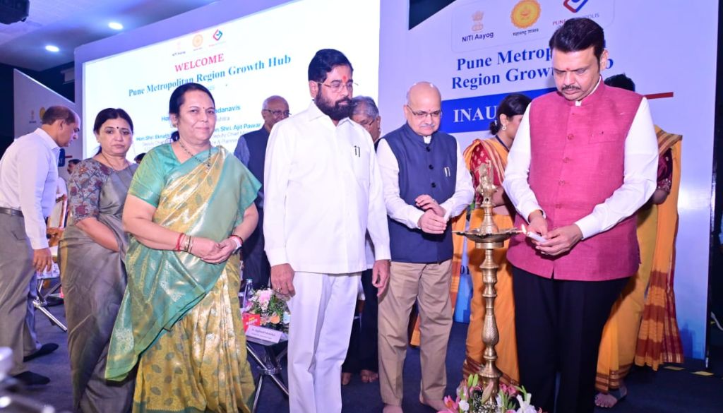 नीती आयोग, महाराष्ट्र शासन आणि पुणे इंटरनॅशनल सेंटरच्या संयुक्त विद्यमाने यशदा येथे आयोजित ‘पुणे मेट्रोपॉलिटन रिजन ग्रोथ हब’च्या शुभारंभप्रसंगी ते बोलत होते. यावेळी उपमुख्यमंत्री एकनाथ शिंदे, राज्याचे उच्च व तंत्र शिक्षण मंत्री चंद्रकांत पाटील, विधान परिषदेच्या उपसभापती डॉ. नीलम गोऱ्हे, नगर विकास राज्यमंत्री माधुरी मिसाळ, नीती आयोगाचे मुख्य कार्यकारी अधिकारी बी. व्ही. आर. सुब्रह्मण्यम, पुणे इंटरनॅशनल सेंटरचे प्रमुख पद्मविभूषण डॉ. रघुनाथ माशेलकर, नियोजन विभागाचे अपर मुख्य सचिव राजगोपाल देवरा, पुणे महानगर प्रदेश विकास प्राधिकरणाचे आयुक्त डॉ. योगेश म्हसे आदी उपस्थित होते.