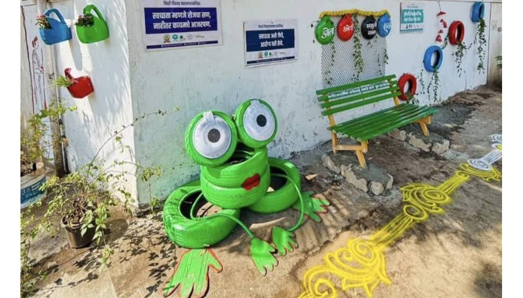 पिंपळे गुरव येथील महानगरपालिकेच्या आरोग्य विभाग ‘ड’ क्षेत्रीय कार्यालय अंतर्गत प्रभाग क्रमांक २९ मधील विजयनगर बस स्टॉप येथील ठिकाण संपूर्ण कचरामुक्त करून त्या परिसराचे सुशोभिकरण करण्यात आले आहे. टाकाऊ वस्तूंचा वापर करून ‘वेस्ट टू आर्ट’ संकल्पनेंतर्गत खराब झालेले टायर, पुठ्ठा, मातीचा माठ, टाकाऊ सिमेंटचे पाईप यांचा उपयोग करून आकर्षक सेल्फी पॉईट तयार करण्यात आला आहे. तसेच येथे आरोग्य व पर्यावरण विषयक जनजागृती करणारे सामाजिक संदेश लिहिण्यात आले आहेत. या उपाययोजनांमुळे गेल्या काही दिवसापासून येथे कचरा टाकणे बंद झाले असून स्थानिक नागरिकांकडून आरोग्य कर्मचाऱ्यांचे कौतुक होत आहे. हा परिसर कचरामुक्त करण्यासाठी आरोग्य अधिकारी शांताराम माने, मुख्य आरोग्य निरीक्षक शंकर घाटे, योगेश फल्ले, आरोग्य निरीक्षक प्रणय चव्हाण यांच्यासह इतर कर्मचाऱ्यांनी विशेष परिश्रम घेतले.